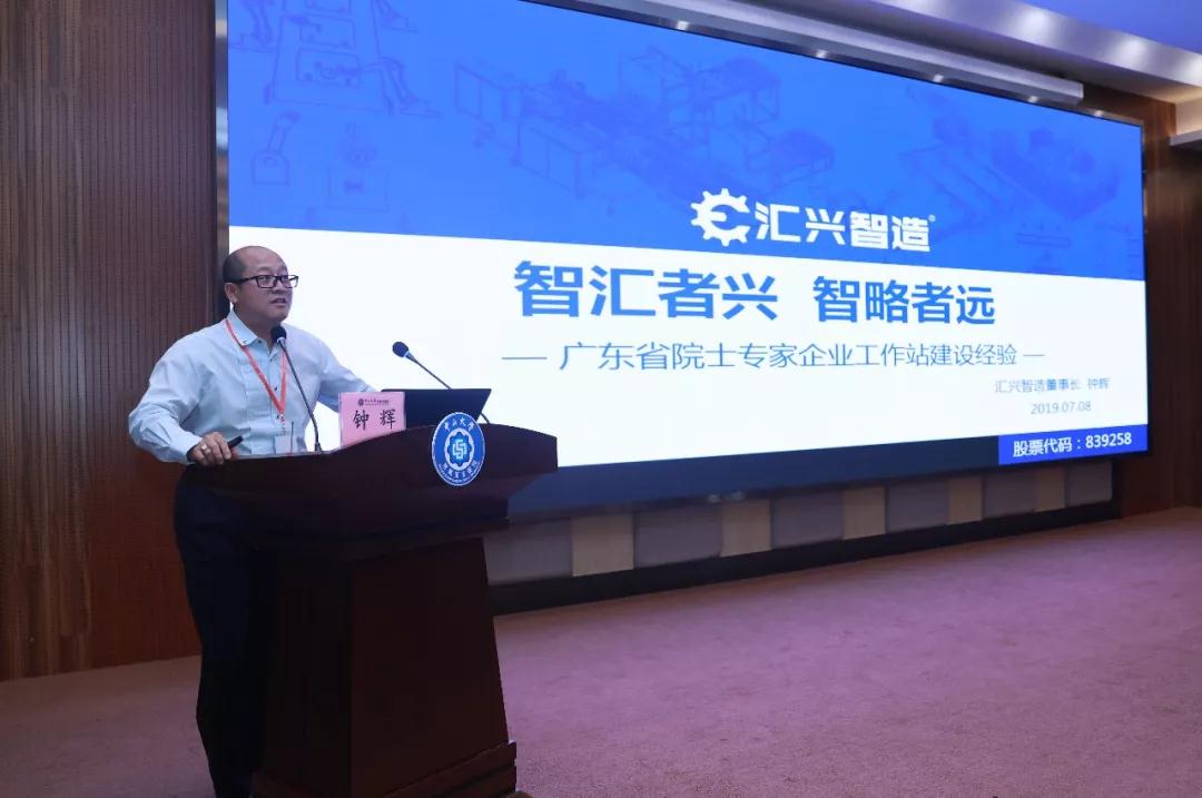 為助力粵港澳大灣區創新人才高地建設和國際科技創新中心建設,7月8日,2019年廣東省院士專家工作站示范交流活動暨第107期廣東院士講壇在中大五院舉行。廣東匯興精工智造股份有限公司鐘輝董事長受邀參加此次活動,并作“示范院士專家工作站典型經驗報告”分享。